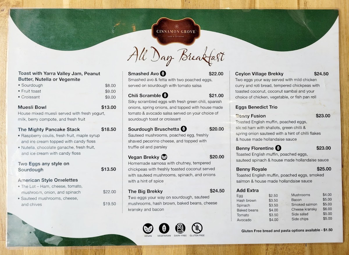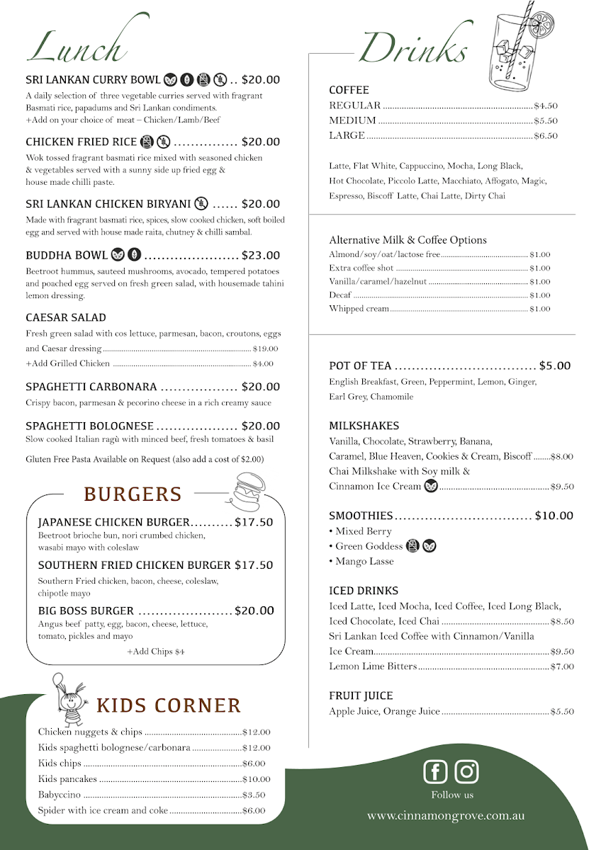 Introducing the menu of Cinnamon Grove Cafe & Catering, nestled in Greensborough, offers a delightful fusion of flavors that leaves a lasting impression. Known for its vibrant atmosphere, the cafe serves an array of scrumptious sandwiches, including the juicy Grilled Chicken with Avocado and the indulgent Southern Fried Chicken with Chipotle, all priced around A$14.50.